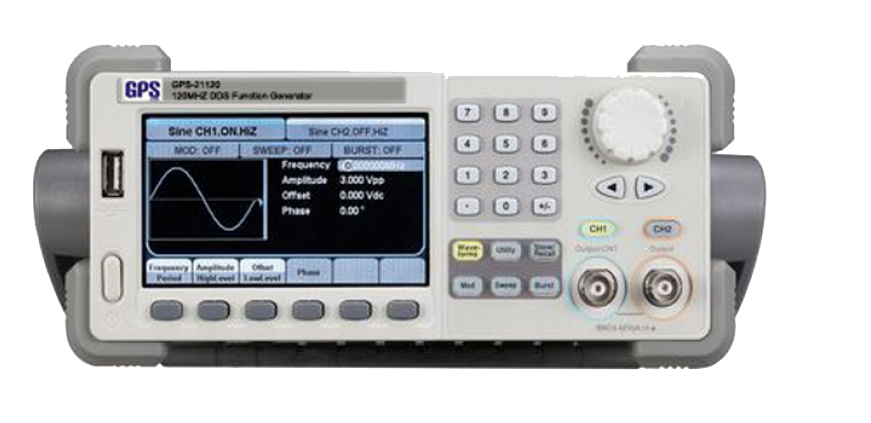 دستگاه DDS Function /Arbitrary waveform Generator مدل GPS-2125 با رنج فرکانسی 25MHz و رزولوشن 1µHz دارای سرعت نمونه بردای 125Ms/Sec - دارای صفحه نمایش رنگی "3.5 نوع TFT با منوی User-Friendly و با قابلیت تولید شکل موج سیگنال سینوسی ، مربعی ، دندان اره ای ، پالس ، نویز سفید ، دارای مدولاسیون آنالوگ PM/FM/AM و مدولاسیون دیجیتال ASK/PSK/PWM ، قابلیت Sweep به صورت Lin/Log ، دارای دو کانال خروجی مجزا قابل برنامه ریزی ، دارای فرکانس متر داخلی 200MHz ، قابلیت تولید شکل موج دلخواه (Arbitrary)و 48 نوع موج ذخیره شده- دارای USB-HUB جهت انتقال داده ها ، قابل اتصال به PC ، همراه با وسایل استاندارد شامل دفترچه راهنما ، نرم افزار ، کابل USB اتصال به PC و کابل برق ، ساخت کمپانی GPS انگلستان .