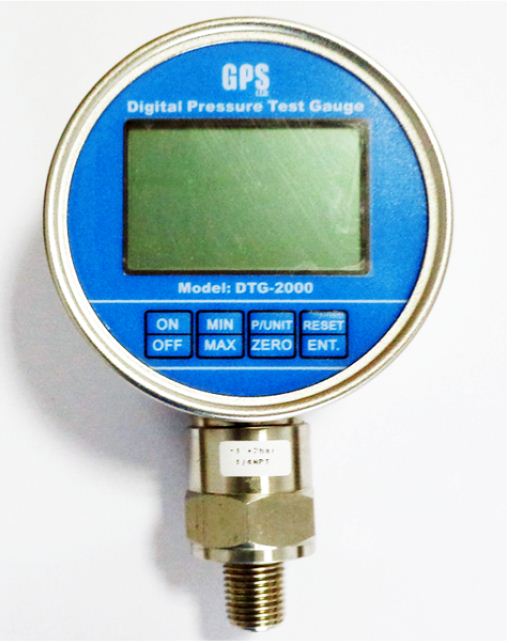 - دستگاه تست گیج فشار دیجیتالی Digital pressure test gauge مدل DTG-2000 با رنج اندازه گیری فشار در رنجهای مختلف - با قابلیت تبدیل 6 واحد اندازه گیری فشار Psi- bar-mBar-kPa- Mpa- Kgf به یکدیگر - دارای قابلیت اندازه گیری Min/max - قابلیت Zero - دارای درجه حفاظت محیطی IP65 - با کد سفارش DTG-2000 دارای کانکتور خروجی 1/4 NPT ساخت GPS انگلستان